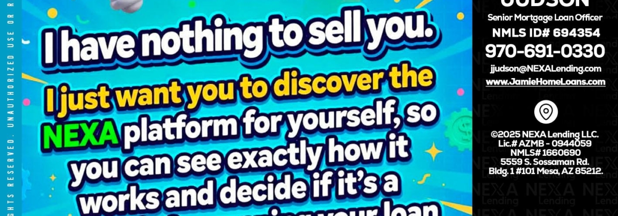I HAVE NOTHING - Jamie Judson -Senior Mortgage Loan OfficerHi, my name is Jamie Judson. I’m a Loan Officer with NEXA Lending LLC., offering personalized mortgage solutions, fast customized quotes, great rates and service with integrity.